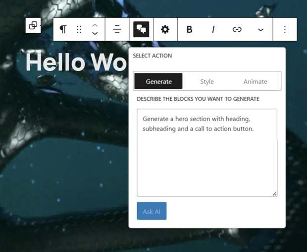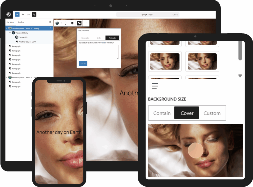 See results instantly without juggling assets back and forth. Animate sequences, blocks, or full sections directly in the Gutenberg editor.